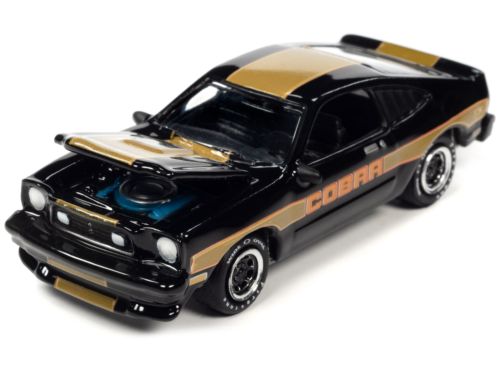 - Brand new 1/64 scale diecast car model of 1978 Ford Mustang Cobra II Black with Gold Stripes “Classic Gold Collection” 2023 Release 1 Limited Edition to 4500 pieces Worldwide die cast model car by Johnny Lightning.