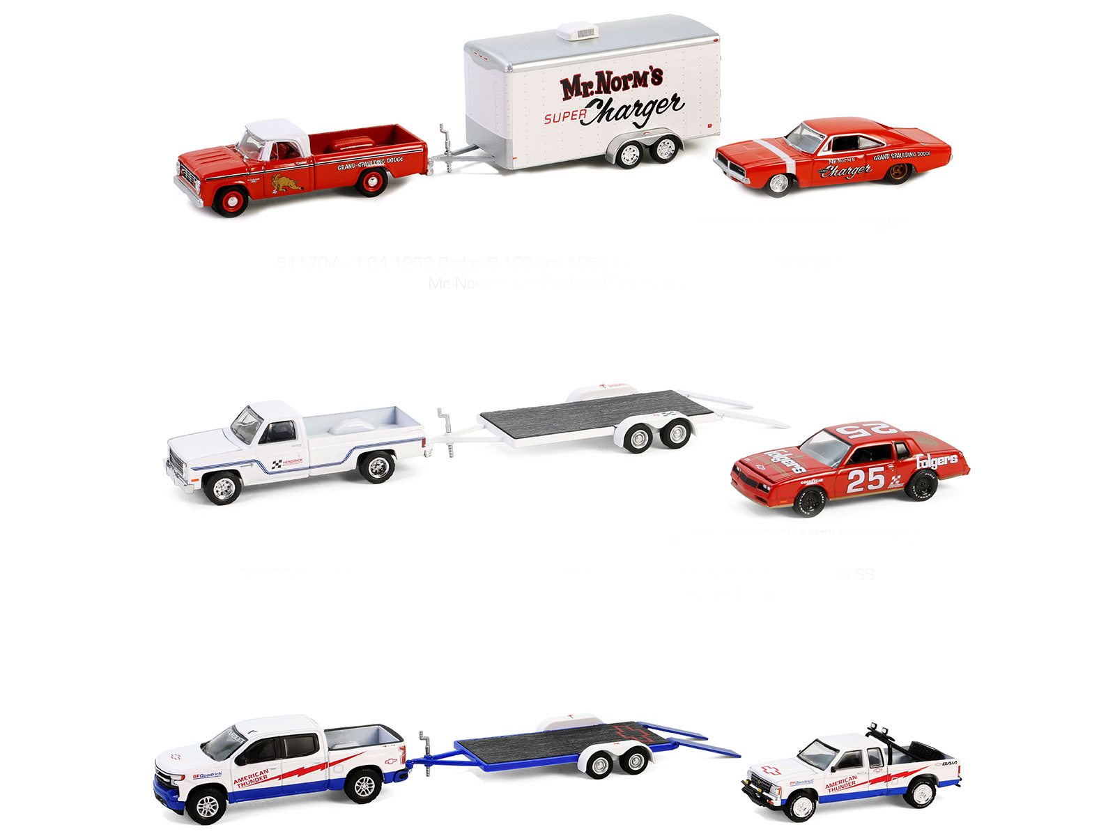 - Brand new 1/64 scale diecast car models of “Racing Hitch & Tow” Set of 3 pieces Series 5 die cast model cars by Greenlight.
